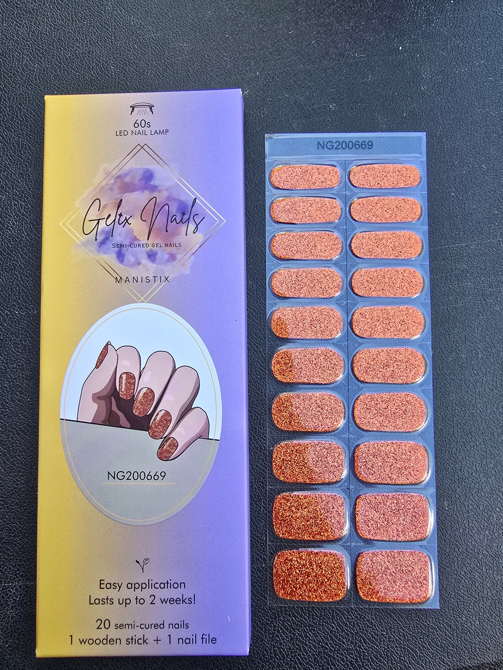 Each Manistix set comes in a black bag with a nail file, cuticle stick, and 20 semi-cured gel nail stickers.